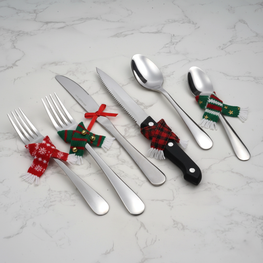 24/48 PCS Christmas Stainless Steel Cutlery Set, Flatware Set with Steak Knives, , Silverware Set Dishwasher Safe